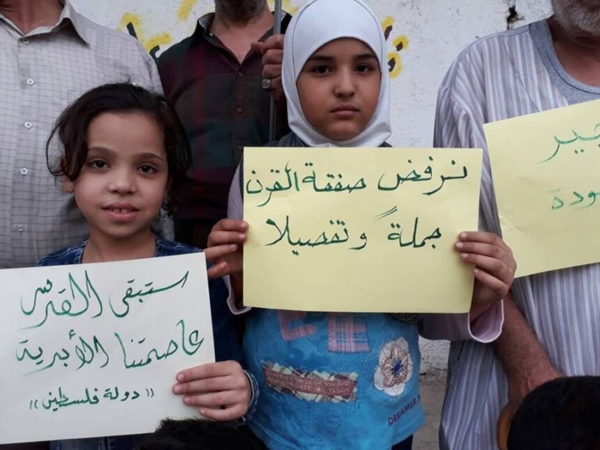 نظم اللاجئون الفلسطينيون في عدد من المخيمات الفلسطينية بسورية اعتصامات ووقفات ضد ممارسات “الاحتلال الإسرائيلي” ورفضاً لقانون القومية العنصري.