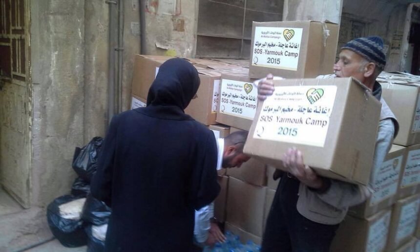 بدأت حملة الوفاء الاوروبية اليوم توزيع الطرود الغذائية لأهالي مخيم اليرموك المحاصرين عند نقطة التوزيع الجديدة عبر مدخل شارع فلسطين والنادي العربي الفلسطيني ، فيما وعد أمين أبوراشد رئيس الحملة بتواصل عمل الحملة في توزيع المساعدات الغذائية على أبناء المخيم .