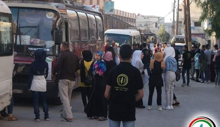 أطلقت رابطة فلسطين الطلابية مشروعها التطوعي “بالعلم المقاوم ننتصر”، لنقل طلاب المرحلة الثانوية بفروعها من المخيمات الفلسطينية في سورية إلى مراكزهم الامتحانية، وأعلنت الرابطة أنها نقلت عشرات الطلاب مجاناً من مخيمات خان الشيح والحسينية والسيدة زينب وخان دنون بريف دمشق، للتخفيف من الأعباء المادية على العائلات ومشاكل الازدحام على المواصلات.
