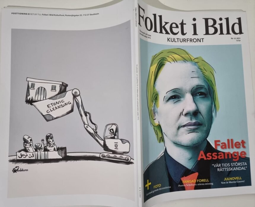 اختارت مجلة (Folket i Bild)السويدية وهي مجلة شهرية مستقلة تصدر من مدينة ستوكهولم رسماً كاريكاتيرياً للفنان الفلسطيني السوري أحمد قدورة غلافاً لها.