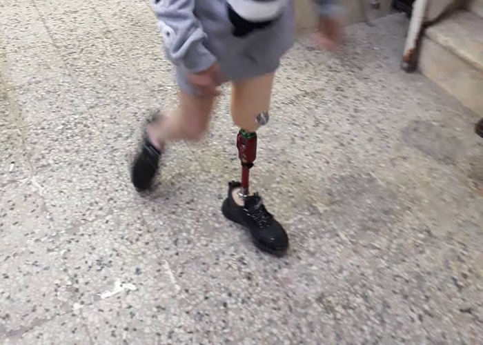 مشيراً إلى أنه قام بتركيب طرف صناعي لطفلته منذ إحدى عشر عاماً عن طريق وكالة الأونروا، حيث تبرع المفوض العام للأونروا أمانيا مايكل إيبيي حينها بمبلغ 2000 دولار أمريكي، مضيفاً أن الطرف الصناعي الحالي بات قديماً ولم يعد يتناسب مع مرحلتها العمرية، وهي بحاجة إلى تبديله وتركيب طرف جديد.