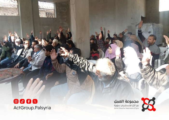 اجتمع أهالي مخيم درعا يوم أمس الجمعة لانتخاب لجنة تمثيلية تُعنى بمتابعة المهام والأعمال الموكلة لها. وقد شهد الاجتماع اقتراح عدد من الأسماء من قبل المشاركين، حيث تم التصويت على حوالي 30 شخصاً من مختلف الفئات العمرية والمهنية، بما في ذلك المثقفين والأطباء والمحامين والشباب النشطين، بالإضافة إلى ممثلين عن النساء.