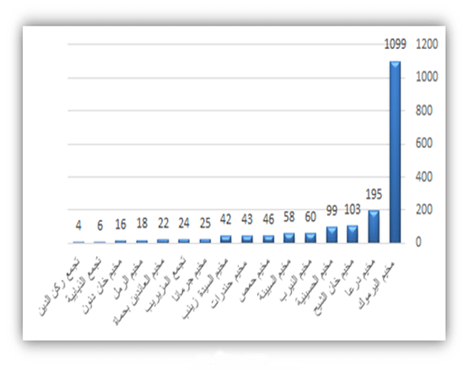 أعلنت مجموعة العمل من أجل فلسطينيي سورية أن (1860) لاجئاً فلسطينياً قضوا حتى نهاية شهر يونيو-حزيران 2015 ، وذلك إثر استهدافهم المباشر داخل مخيماتهم وتجمعاتهم في سورية، حيث قضى (1099) لاجئاً في مخيم اليرموك بدمشق، و (195) لاجئاً في مخيم درعا جنوب سورية، و (103) آخرين في مخيم خان الشيح بريف دمشق ، و (99) لاجئاً قضوا في مخيم الحسينية، و(60) ضحية في مخيم النيرب بحلب ، كما وثقت المجموعة (58) ضحية في مخيم السبينة بريف دمشق، و (46) ضحية في مخيم العائدين بحمص، و(43) آخرين في مخيم حندرات بحلب ، و (42) ضحية في مخيم السيدة زينب ، و (25) ضحية في مخيم جرمانا بريف دمشق، و (24) في تجمع المزيريب بدرعا، و (22) ضحية في مخيم العائدين بحماة، و(18) ضحية في مخيم الرمل في اللاذقية، و (16) ضحية في مخيم خان نون بريف دمشق، و (6) ضحايا في تجمع الذيابية بريف دمشق، و (4) ضحايا في تجمع ركن الدين بريف دمشق.