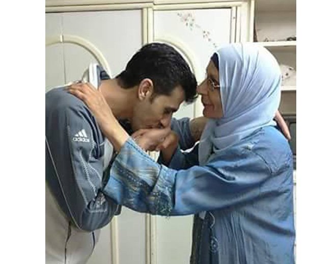 صورة المعتقل وهو يقبل يد والدته