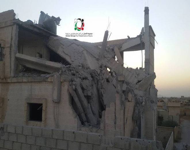 أكد مراسل مجموعة العمل من أجل فلسطينيي سورية في مخيم خان الشيح بريف دمشق استهداف الطائرات الحربية للمزارع المحيطة بالمخيم، حيث ألقت المروحيات برميلين متفجرين على الأقل حتى الساعة على الأراضي المتاخمة للمخيم.