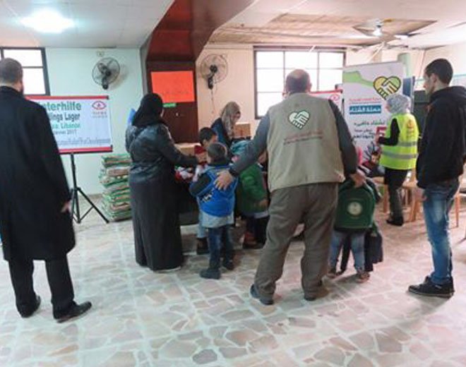 ووفقاً لأحد القائمين على الحملة أنهم وزعوا سلات غذائية وصحية ومادة المازوت للتدفئة لـ 100 عائلة في منطقة البقاع الأوسط، منوهاً أن الحملة زات مخيم الأبرار في منطقة بر الياس، وقدمت مساعدات اغاثية لـ 60 عائلة مهجرة من سورية، والاتفاق على اكساء 50 طفل يتيم، كما قدمت لـ 91 عائلة مساعدات غذائية وبطانيات شتوية في مخيمي برج البراجنة والبداوي، في حين وزعت الحملة في يومها الرابع مادة المازوت على أكثر من 60 عائلة نازحة في محيط مدينة بعلبك اللبنانية.