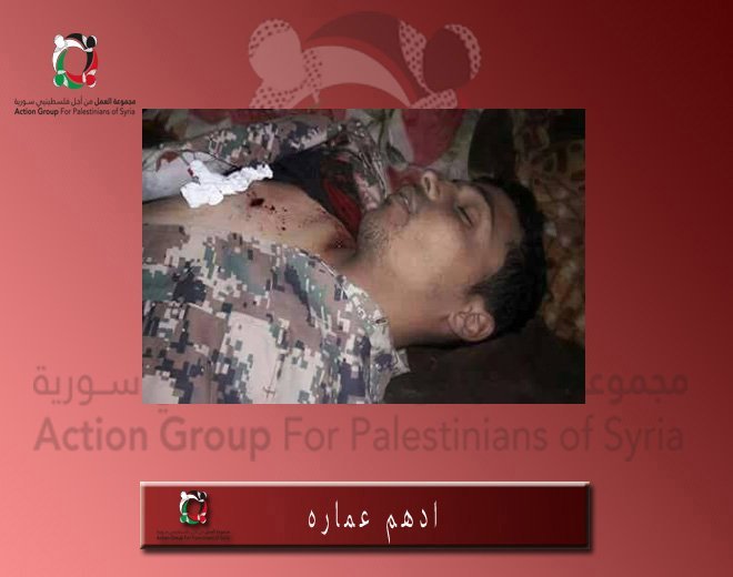قضى اللاجئ الفلسطيني السوري”أدهم عمارة” (30 عاماً)، من أبناء مخيم درعا جراء مشاركته القتال إلى جانب قوات المعارضة السورية في المعارك المندلعة في حي المنشيةبدرعا البلد جنوب سورية. مما يرفع حصيلة عدد اللاجئين الفلسطينيين الذين قضوا منذ بدء أحداث الحرب إلى (3444) ضحية، بحسب احصائيات مجموعة العمل.