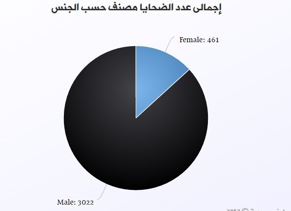 فيما بلغت الاحصائية الاجمالية لعدد الضحايا الفلسطينيين 3483 ضحية، وذلك وفق ما استطاع فريق الرصد والتوثيق في مجموعة العمل من رصده وتوثيقه.
