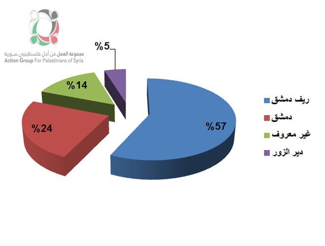 وأشارت مجموعة العمل إلى أن الضحايا الفلسطينيين الذين قضوا خلال شهر شباط/ فبراير 2018، توزعوا حسب المناطق في سورية على النحو التالي: “12” شخصاً قضوا في دمشق، و”5″ آخرين في ريف دمشق، و”3″ لم يعرف مكان مقتلهم، وشخص توفي في دير الزور.