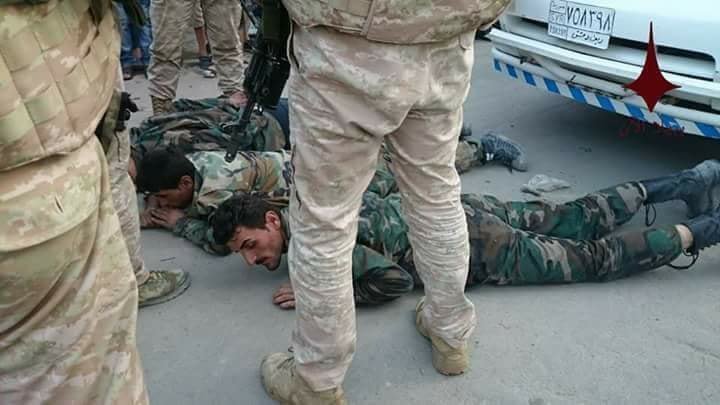 وبثّ ناشطون على مواقع التواصل الاجتماعي فيديو يُظهر قيام عناصر من الشرطة العسكرية الروسية باعتقال آخرين من قوات الحرس الجمهوري، وأمروهم بالانبطاح على الأرض، وبطريقة مهينة.