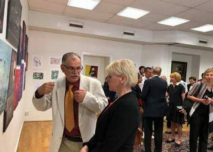 إحياءً للذكرى السبعين لنكبة فلسطين نظم كل من الفنانين التشكيليين الفلسطينيين “مأمون الشايب”، “داليا ياسين”، “مالك مطر” معرضاً فنياً في مقر السفارة الفلسطينية في العاصمة السويدية ستوكهولم يوم 26 أيار/ مايو الجاري.