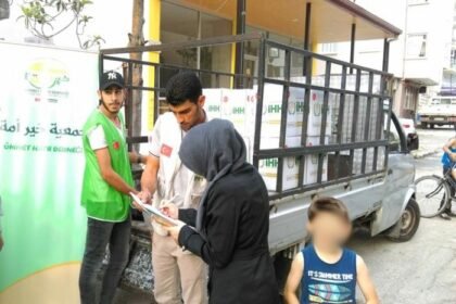 توزيع مساعدات غذائية على العائلات الفلسطينية السورية في مدينة العثمانية